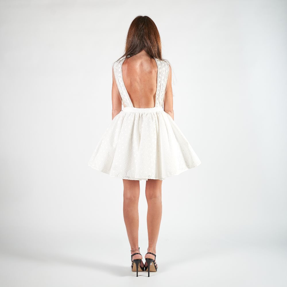 - Abito midi in pizzo san gallo con taglio in vita;