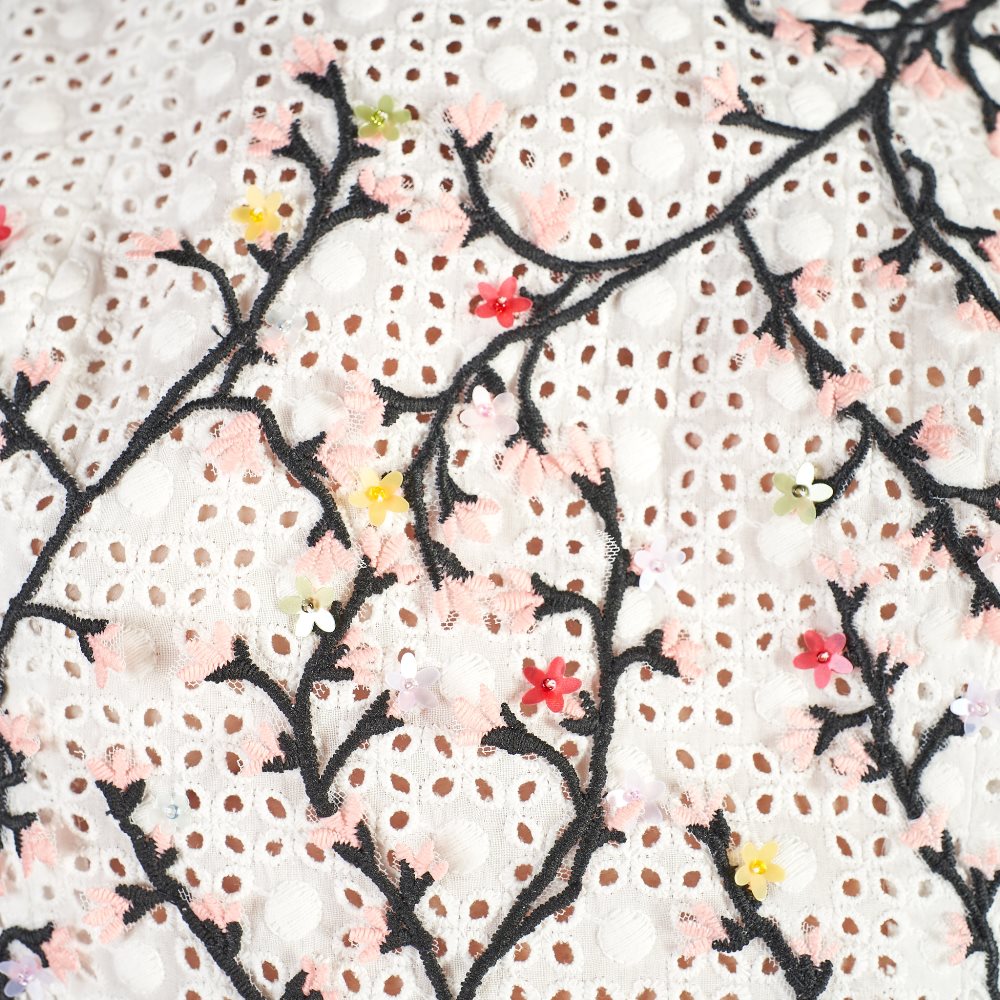 Tutto il ricamo è cucito a mano, con un sottogonna in tulle.