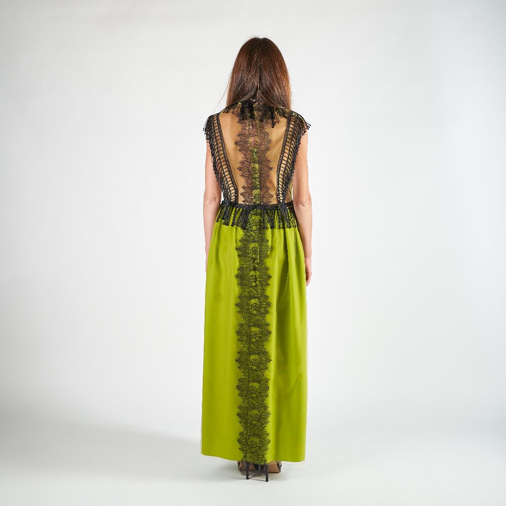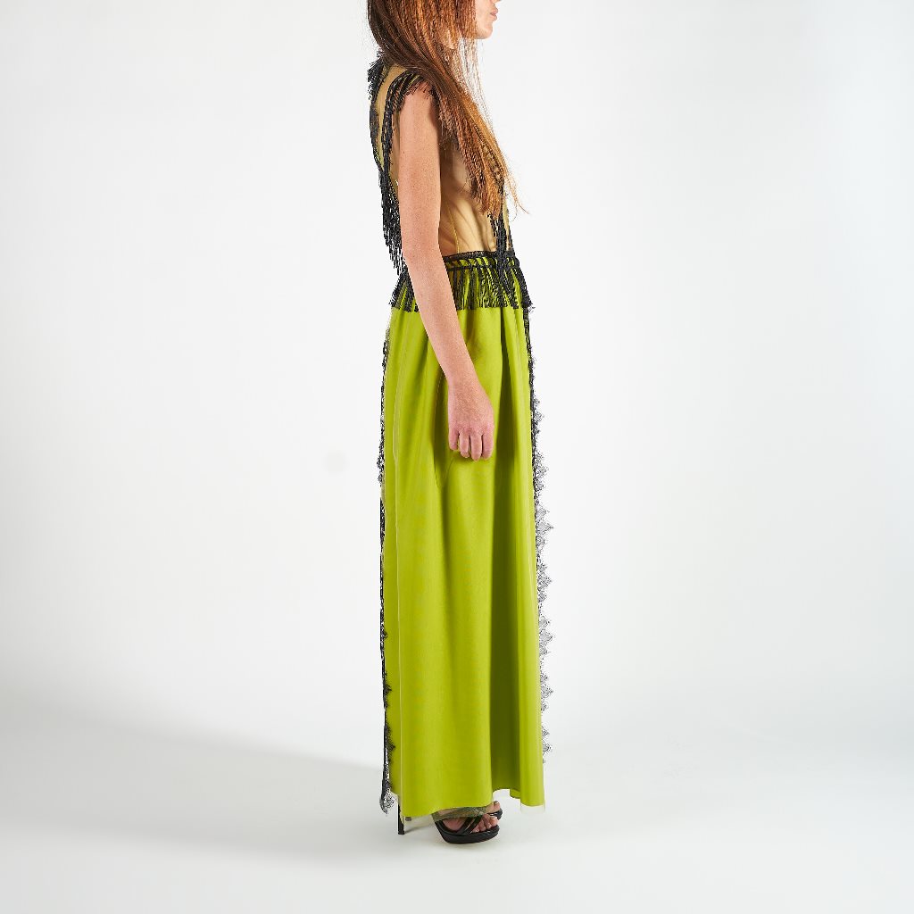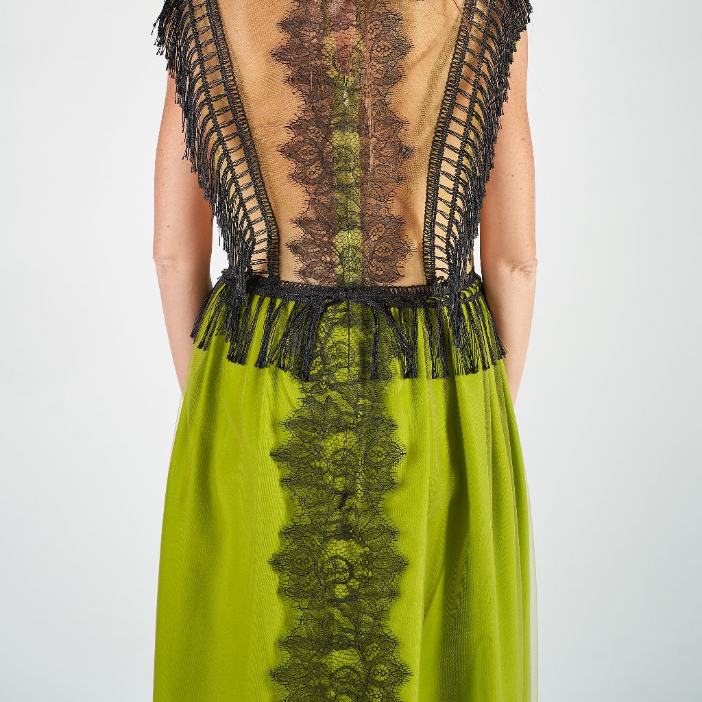- Dettaglio bordo di pizzo su tutto l’abito